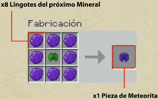 * **Piezas de Meteorita:** 8 Lingotes de Meteorita + 1 Casco de Jade.